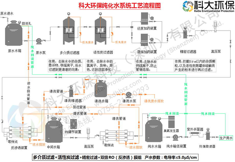三、工藝系統(tǒng): 預(yù)處理系統(tǒng)+二級(jí)反滲透(RO)